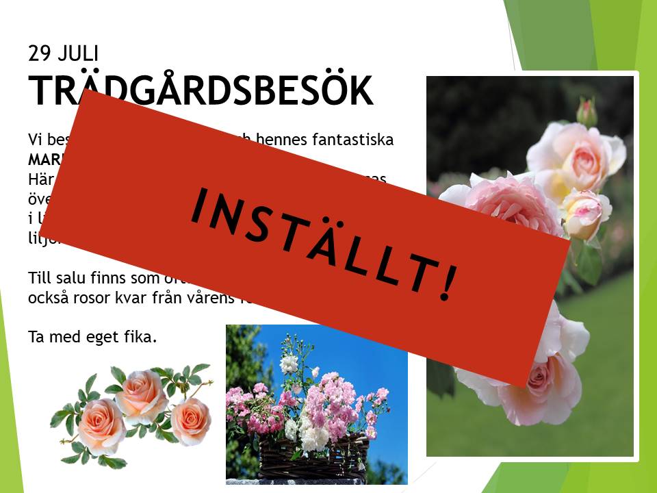INSTÄLLT TRÄDGÅRDSBESÖK!