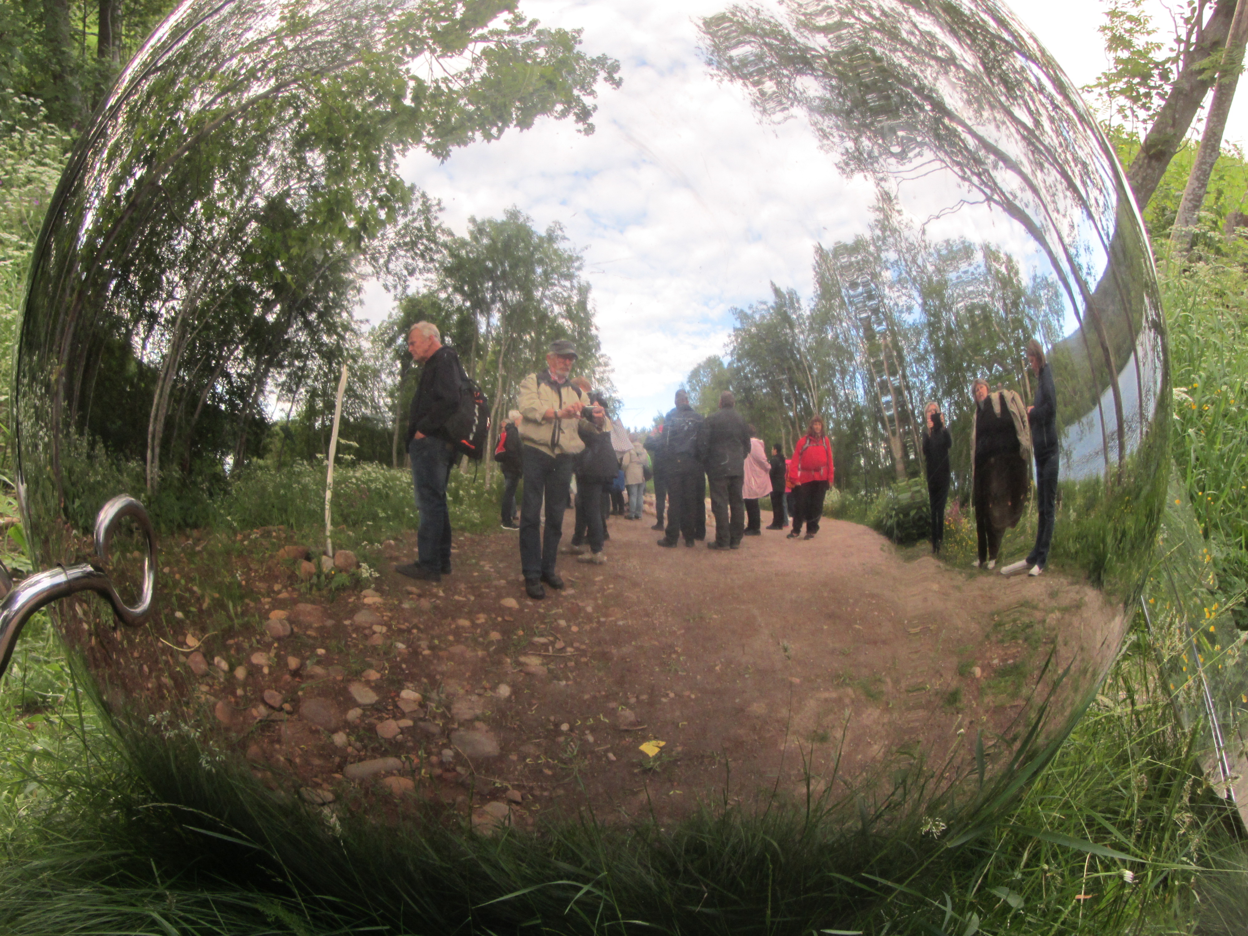Elisabeth Strand Hübinette, byggansvarig vid anläggningen, guidade oss mycket kunnigt. I början av parken finns en bildutställning över hur sågverket såg ut. Det är fascinerande att se hur fort skogen kommer tillbaka när marken inte används. Gångvägarna har restaurerats och bortglömda stentrappor har återfunnits. Många sittplatser finns i parken, likaså grillplatser.